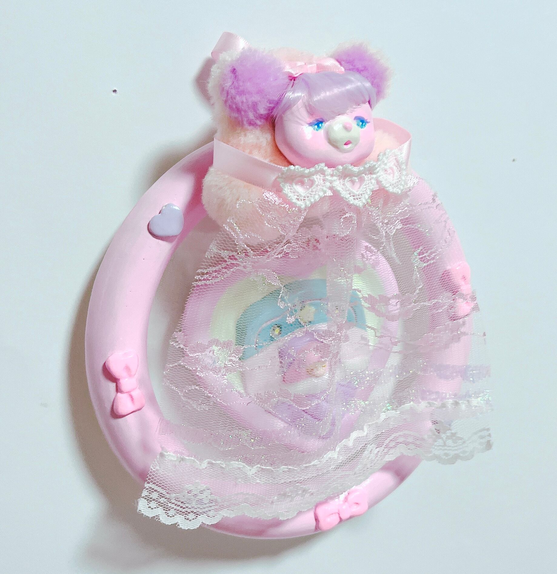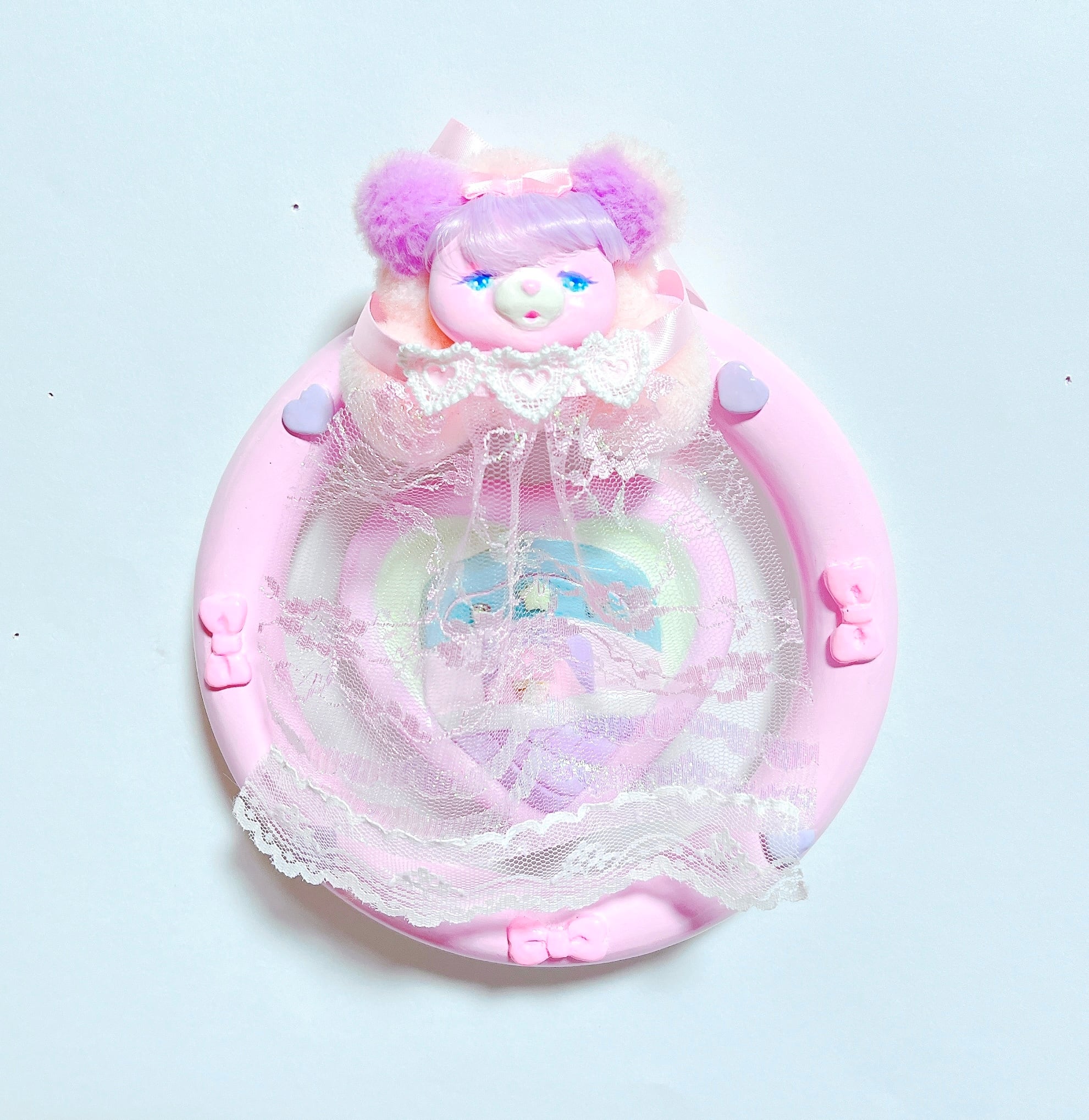 This is a battery-operated wall lamp that can be hung on the wall. The girl sleeping in the heart at the center has a bed that doubles as the lamp. It comes with a removable teddy bear cape that also serves as a curtain, allowing you to enjoy two different moods. The lamp switch is located on the battery box at the back. Even when not lit, it can be enjoyed as wall decor in a small girl’s world.The battery used is an alkaline button battery.※Batteries are not included for overseas customers.※Due to revisions in the U.S. tariff system, we have stopped sales and shipments to the United States.